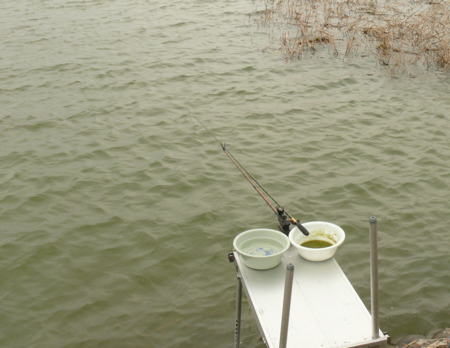대편성을 하고 밑밥을 몇번 던져 주었지만 낮에는 거의 입질이 없었는데 오후 5시경에 7치급 붕어가 첫 입질을 해 주었다.