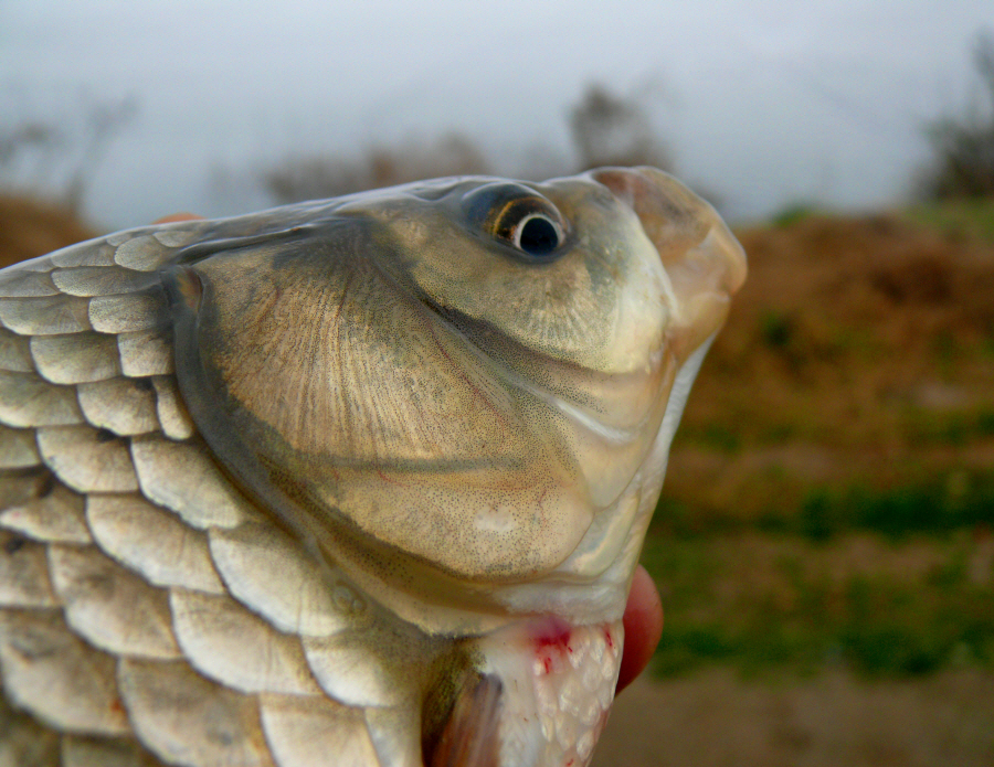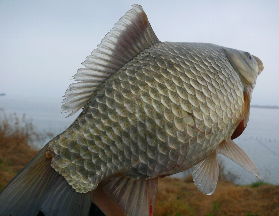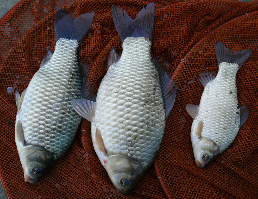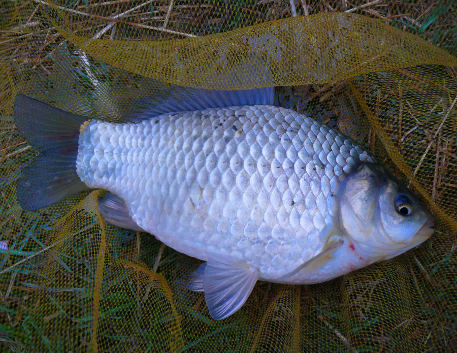 뜰채로 떠 보니 체고 좋은 월척급 붕어다.