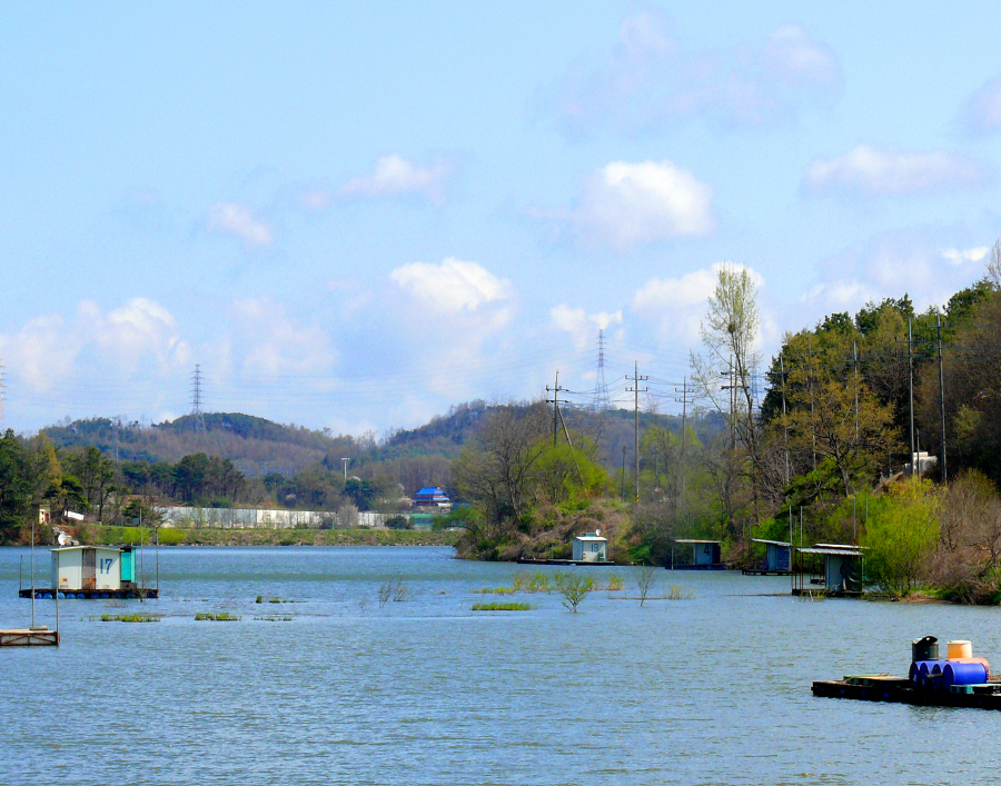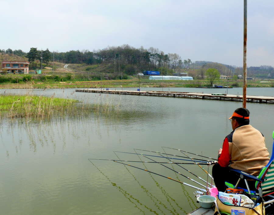 씨알 좋은 붕어들이 입질을 해 주고 있는 당진 가교리지 낚시터 전경