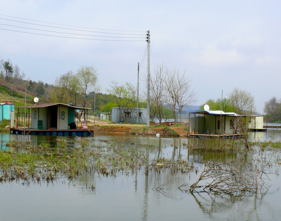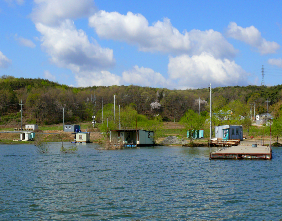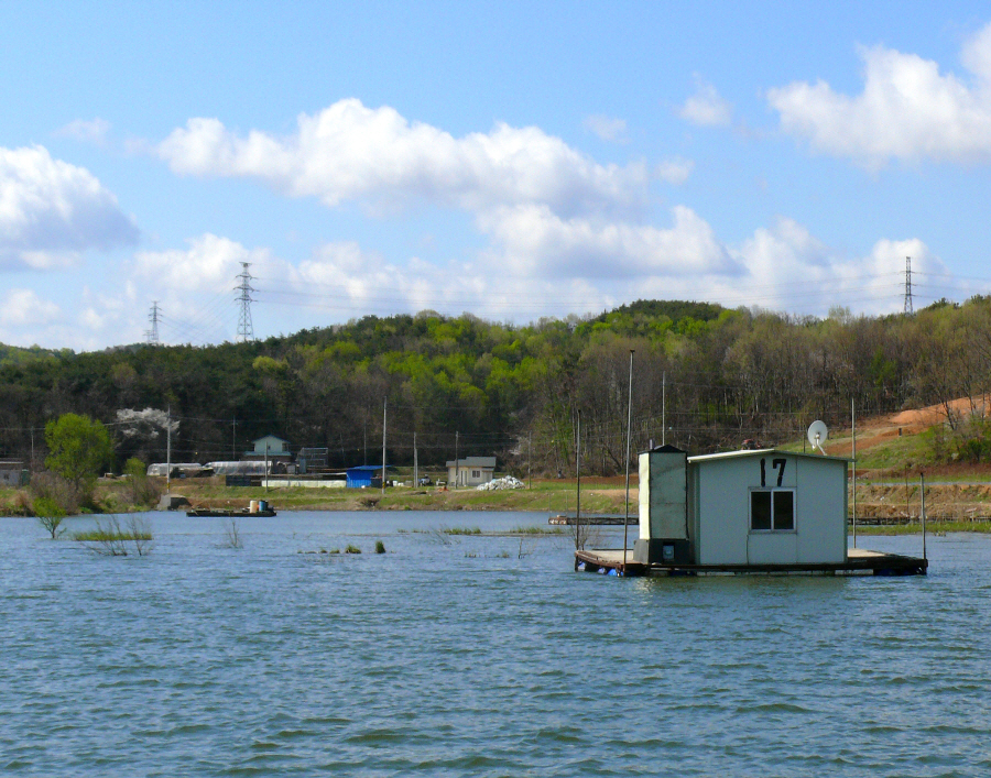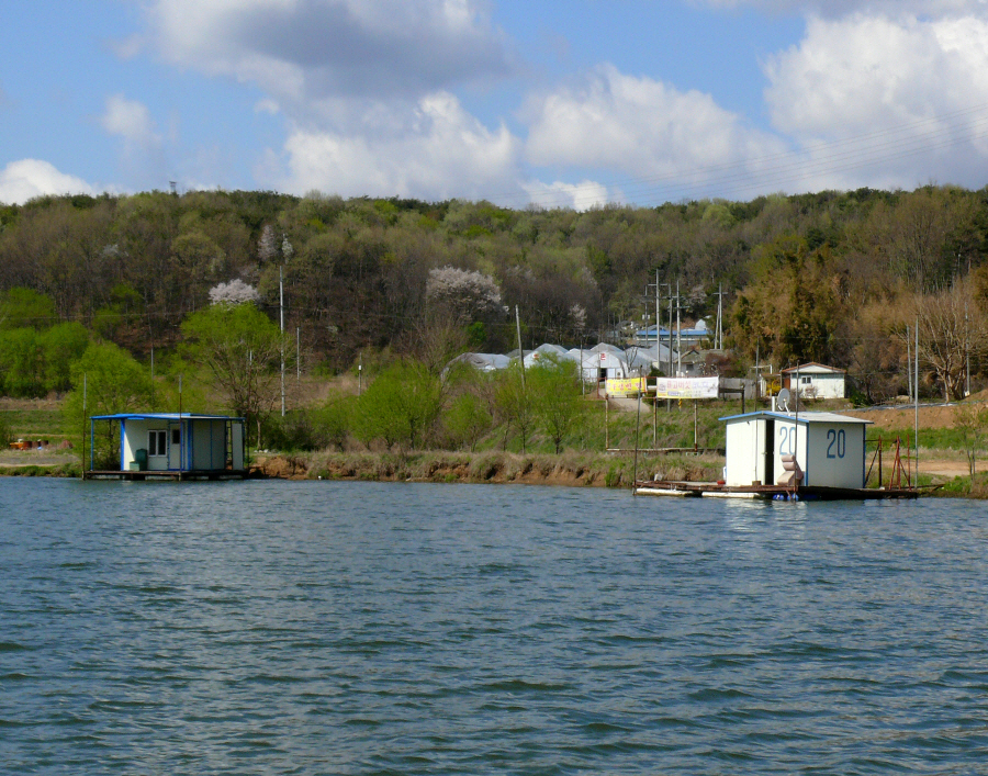 상류 건너편 길쪽 포인트에 위치한 수상좌대입니다.