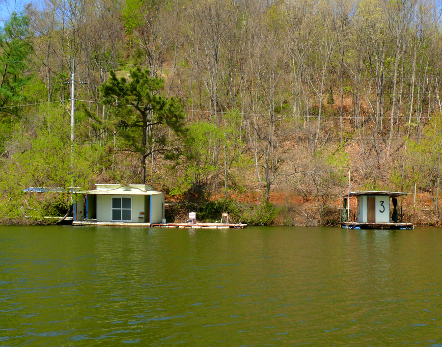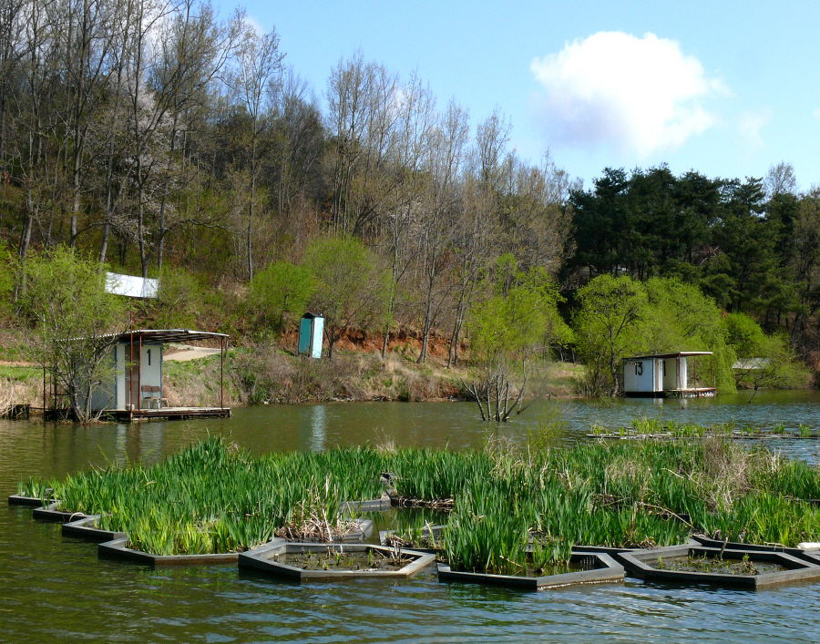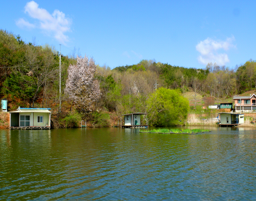 나무와 어울어져 멋져 보이는 수상좌대입니다.