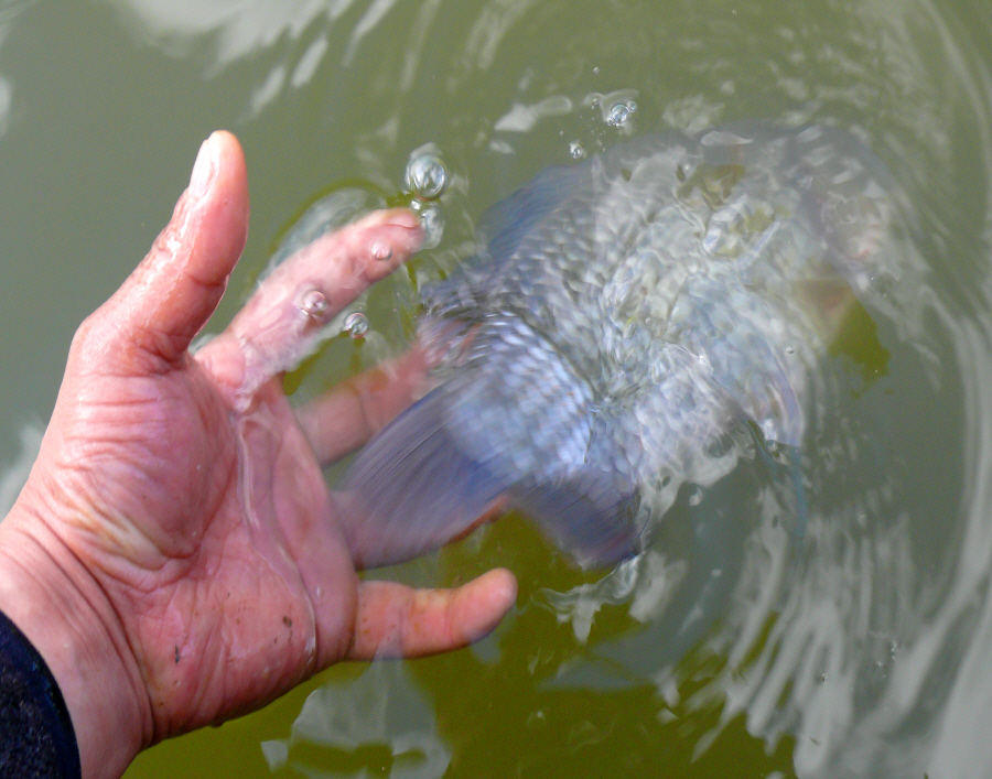 윤교수님이 오후시간에 붕어를 걸어 냅니다.
