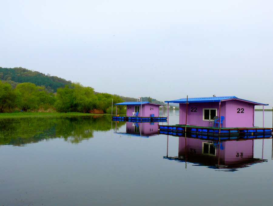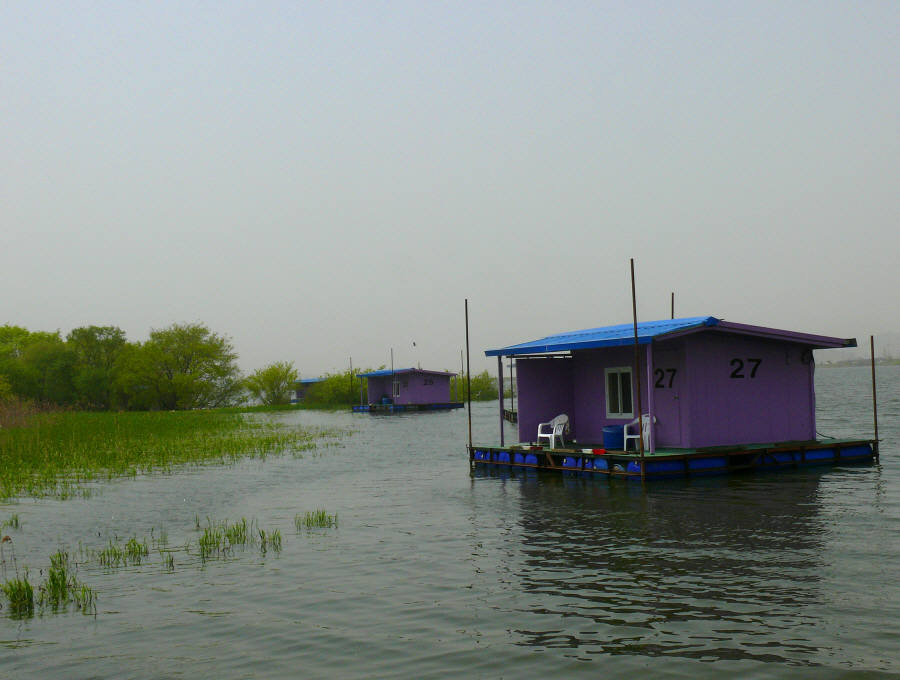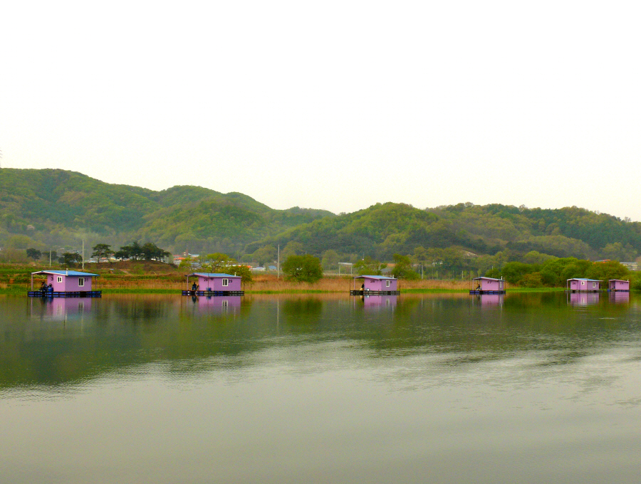 수초대를 바라 보고 있는 신형좌대들입니다.
