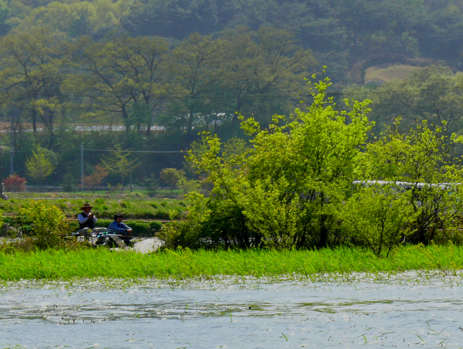 상류권과 중류권 연안에는 낮낚시를 즐기는 조사들이 신나게 손맛을 즐기는 것이 목격되었으며,