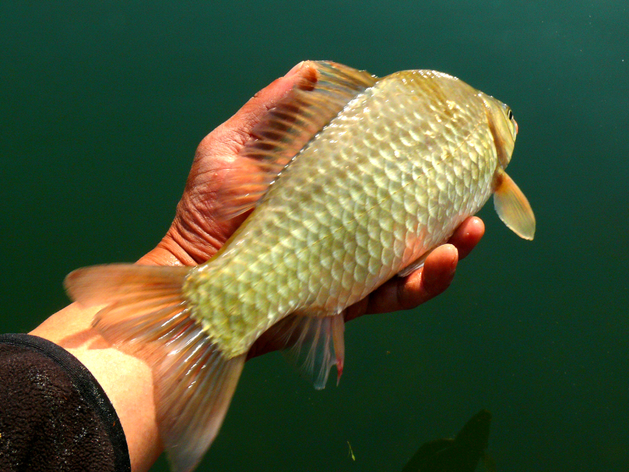 동틀 무렵에 윤교수님이 걸어낸 황금 토종붕어 9치급을 만나면서 모든 피곤함이 사라지는듯한 느낌이다.