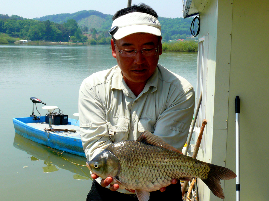 윤교수님이 걸어 낸 45센티급 떡붕어입니다.