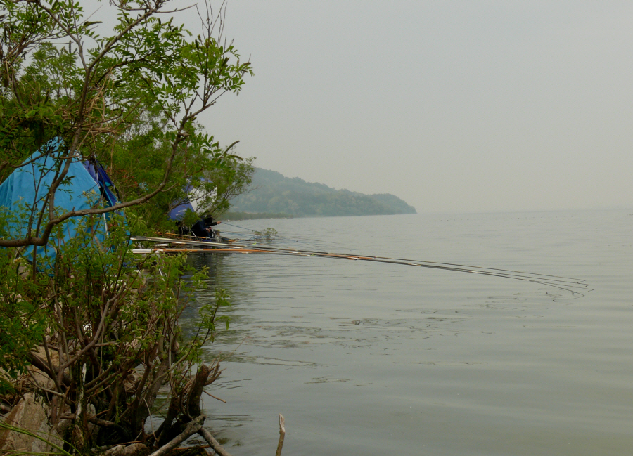 아침 입질을 기대하고 긴잠을 잤는데 빗방울이 떨어지고 바람이 일어 나기에 서둘러 철수를 했다.