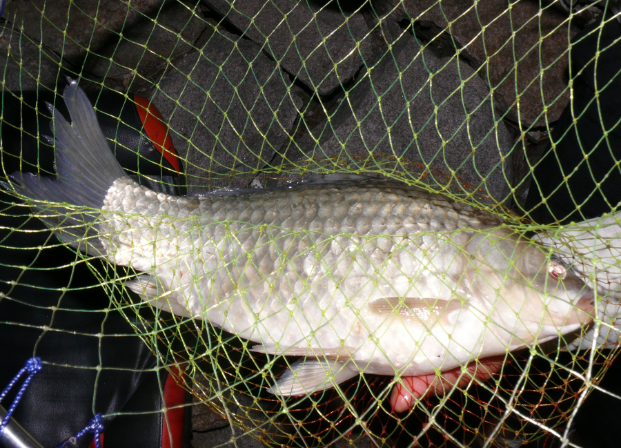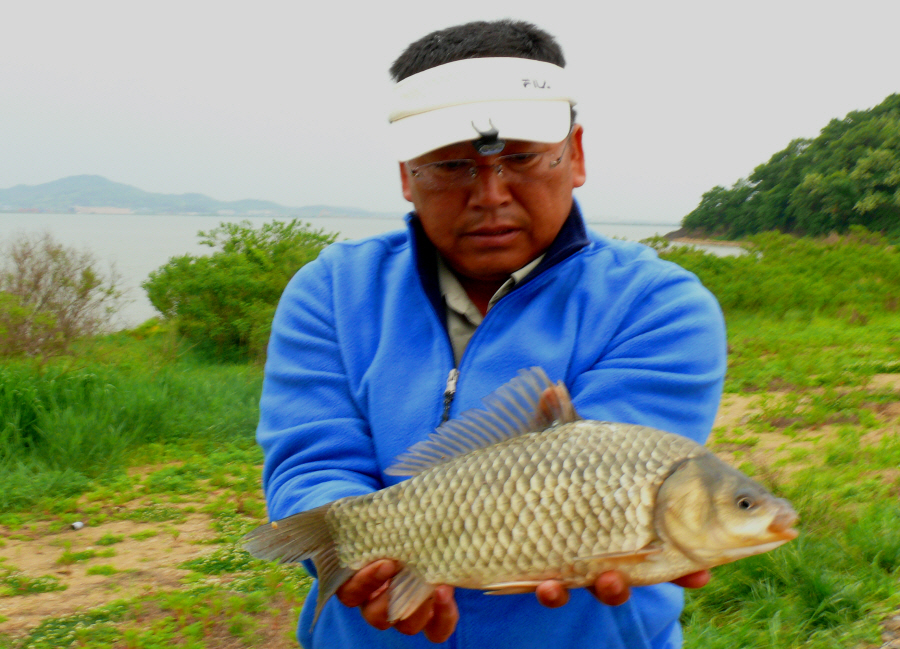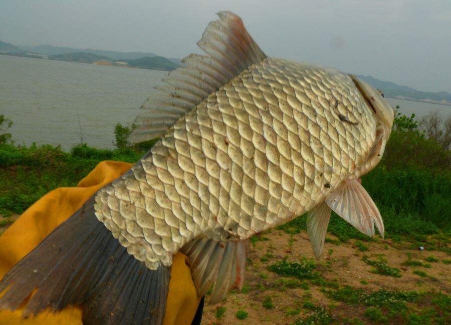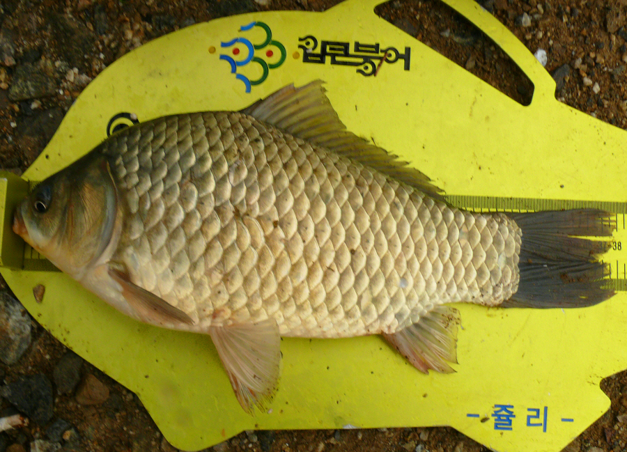 필자가 걸어낸 38cm급 평택호 붕어입니다.
