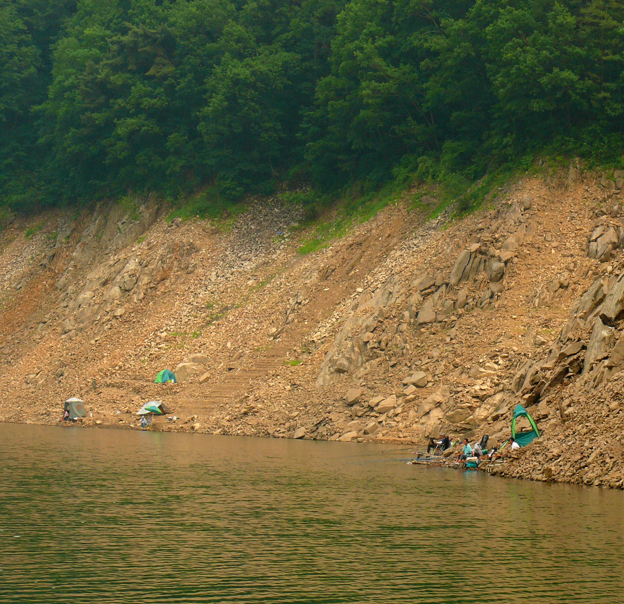 새벽 2시 30분경 텐트 속에 있는데 하도 첨벙거림는 소리가 많이 들려서 밖을 내다보니