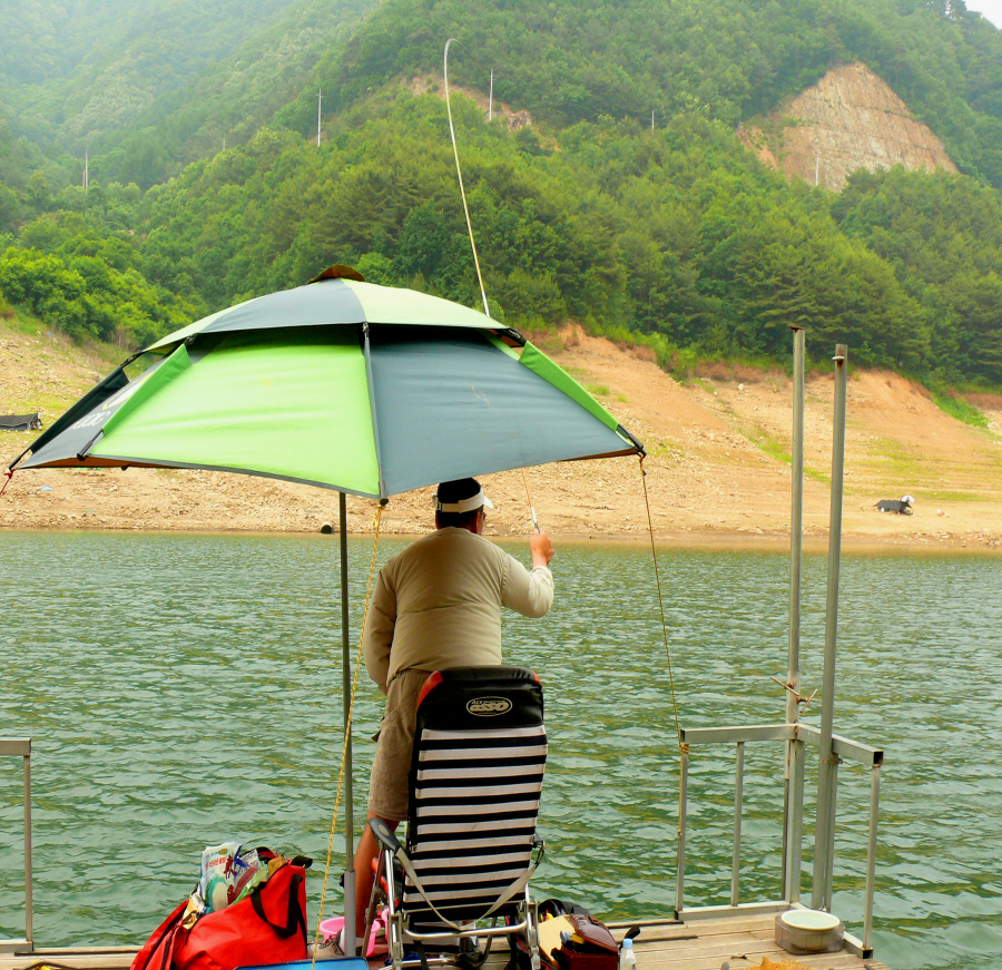 오늘은 윤교수님은 중층낚시로 5미터권 수심대를 공략해 보기로 했고, 필자는 내림낚시로 3미터권 수심을 공략해 보기로 했다.