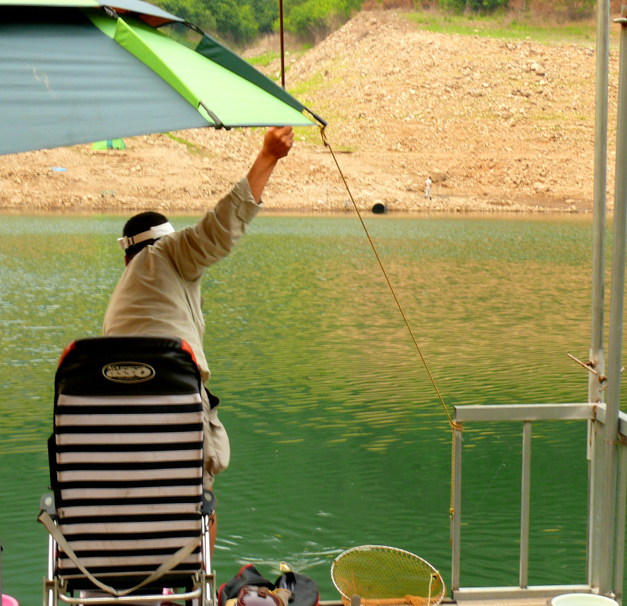 잡어와 떡붕어의 입질을 계속해서 파악을 하던 윤교수님이 떡붕어의 입질이 약하게 전해 진다고 하면서 드문드문 힘찬 화이팅을 보여주신다.