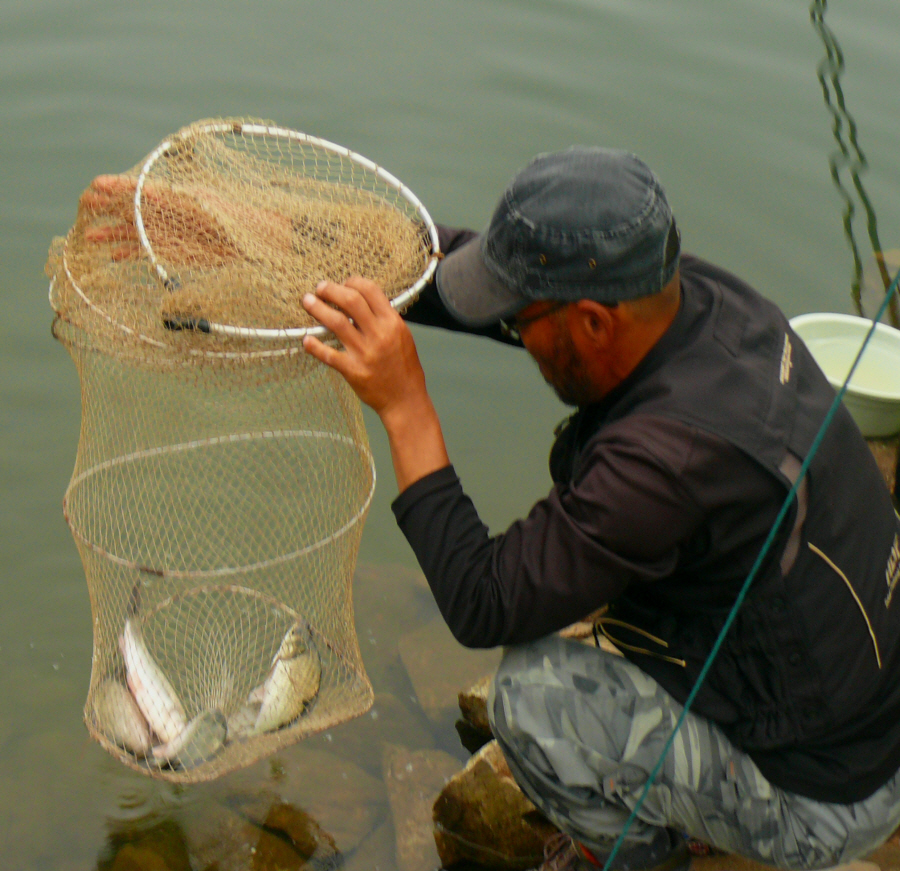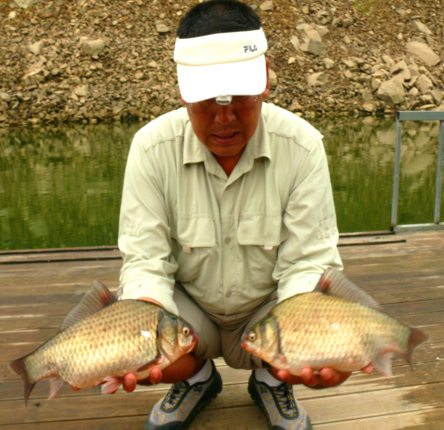 윤교수님이 35센티 이상급 떡붕어를 들어 보입니다.