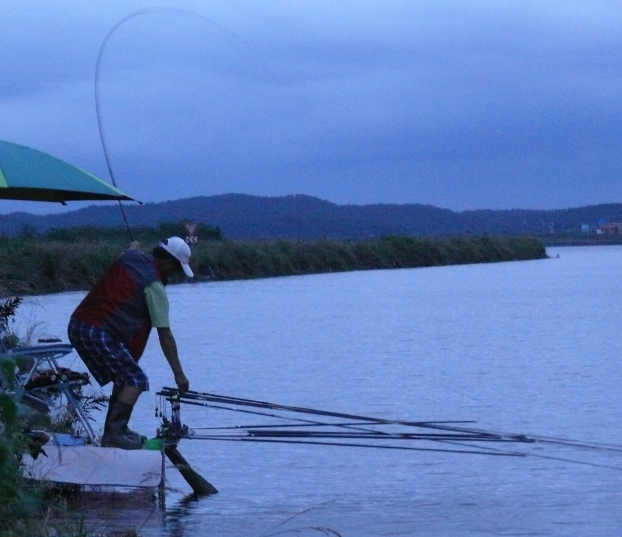 캐미를 밝히자 말자 천수만 잉어를 걸고서 한창 실갱이를 펼쳐보입니다.