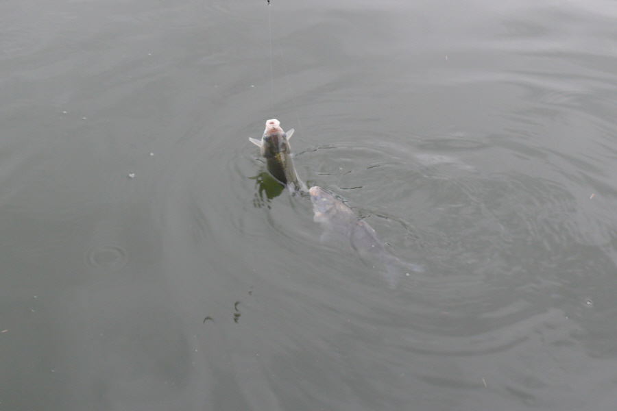바닥층에서 입질이 없다 생각될 때는 바닥층에서 30센티 정도 채비를 띄우니 그 층에서 다시 입질이 이어진다.