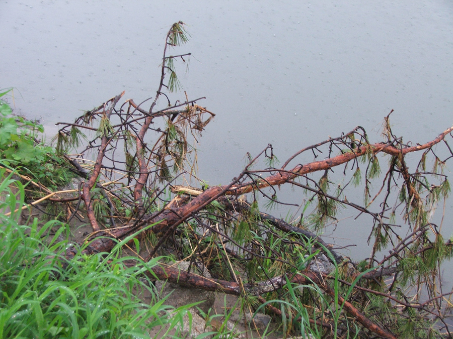소나무가 뿌리째 뽑혀서 떠내려 왔습니다~