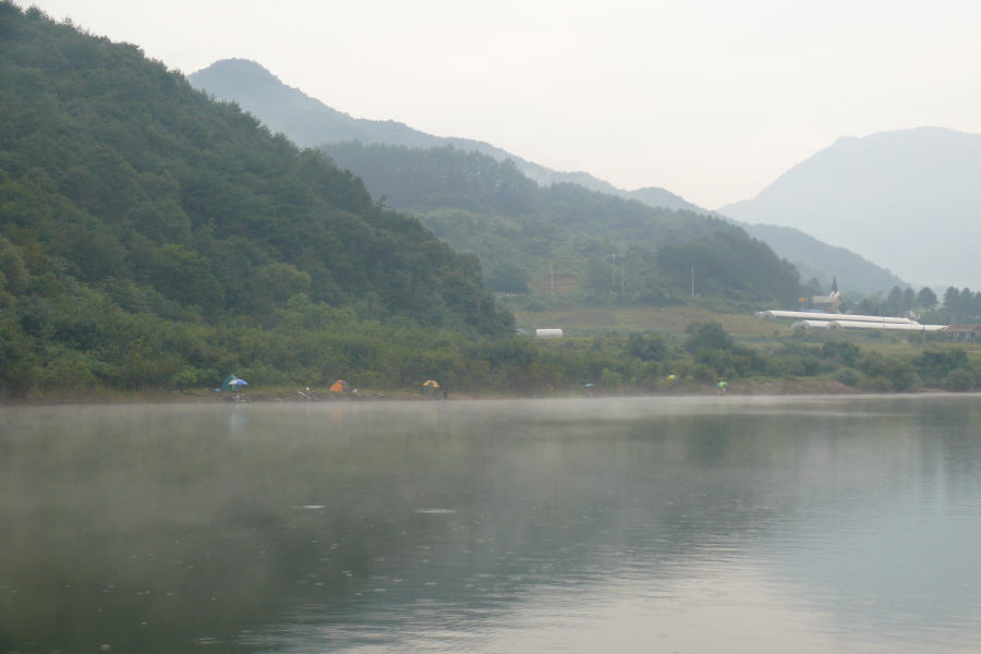 맑은 공기와 새벽의 물안개 시원한 바람.