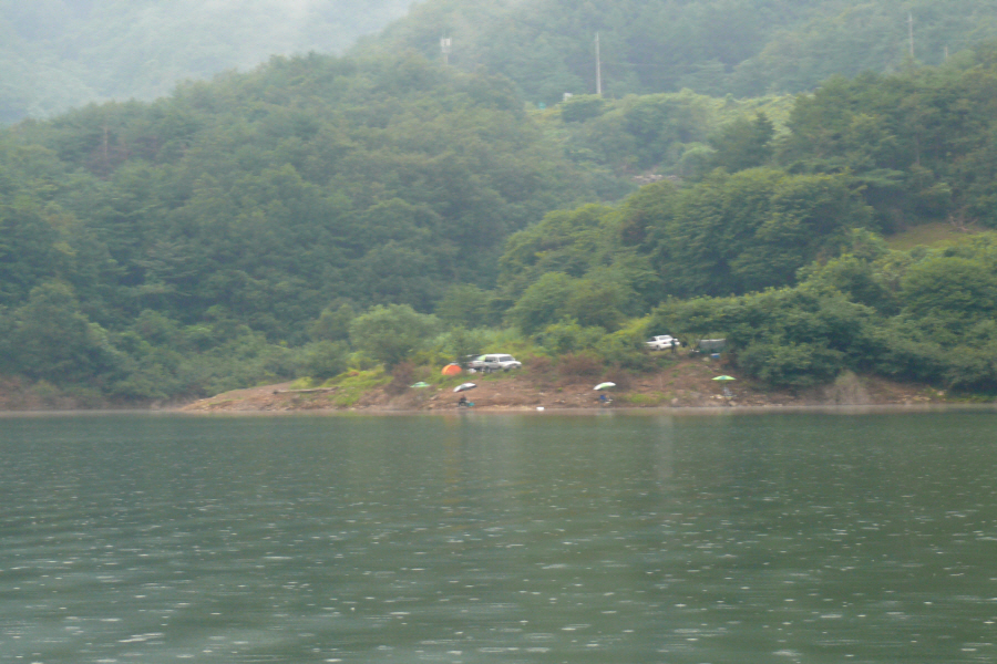 12시경 까지 낚시를 하다가 새벽 1시경에 비가 오는 것을 보고 텐트속에서 비소리를 들으면서 휴식을 취했다.