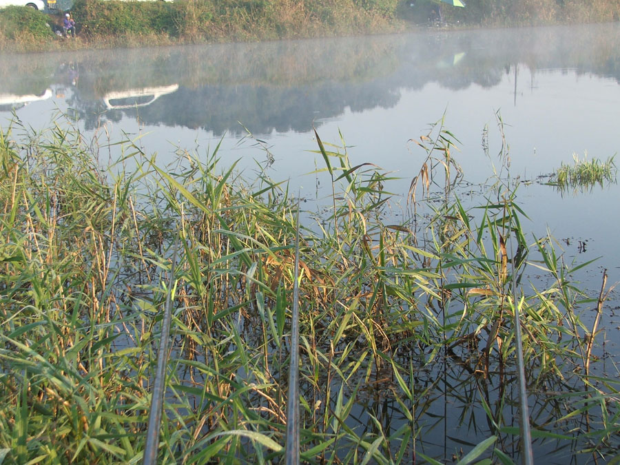 저수지 여건상 밤시간에는 대편성이 어려운 수초 갈대 포인트라서 한낮 땡볕에 갈대가 잘 분포되어있는 상류권 생자리에 대편성을 했다.