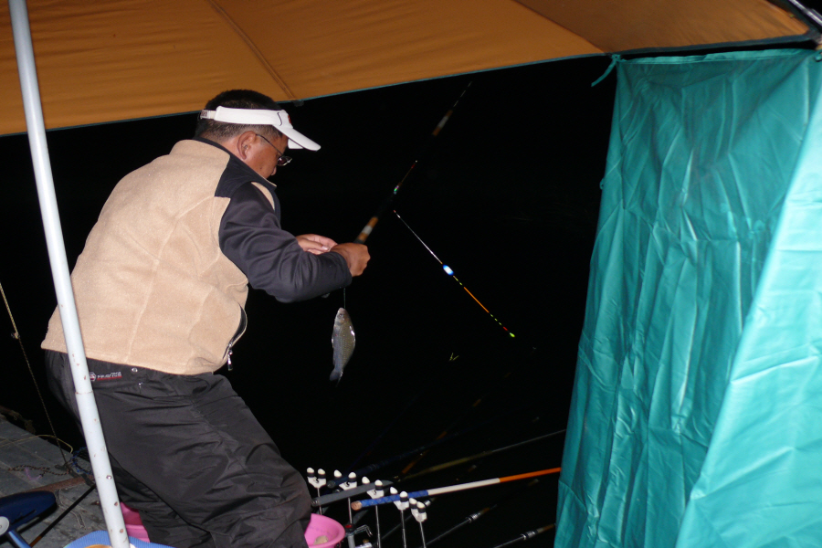 사이 사이에 채비를 투척하고, 낮시간 동안 열심히 밑밥질을 했다.