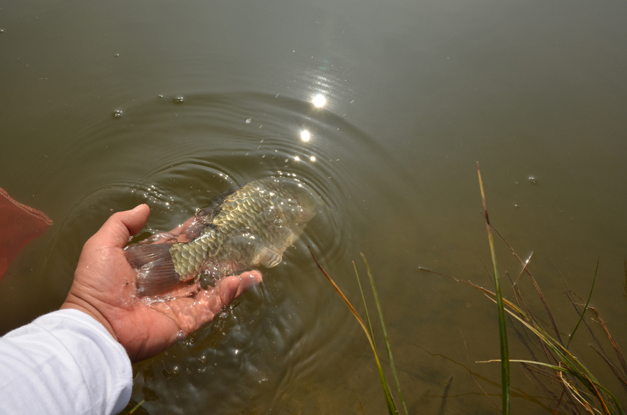 아무튼 11시쯤 채비를 정리하고, 양파망에 담아놨던 몇수의 붕어를 사진에 담고 바로 방생한다.