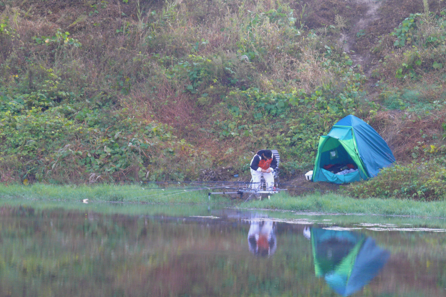 새벽 1시경까지 밤낚시를 즐기다가 텐트에서 휴식을 취하고, 아침에 다시 낚시에 임해 보는데