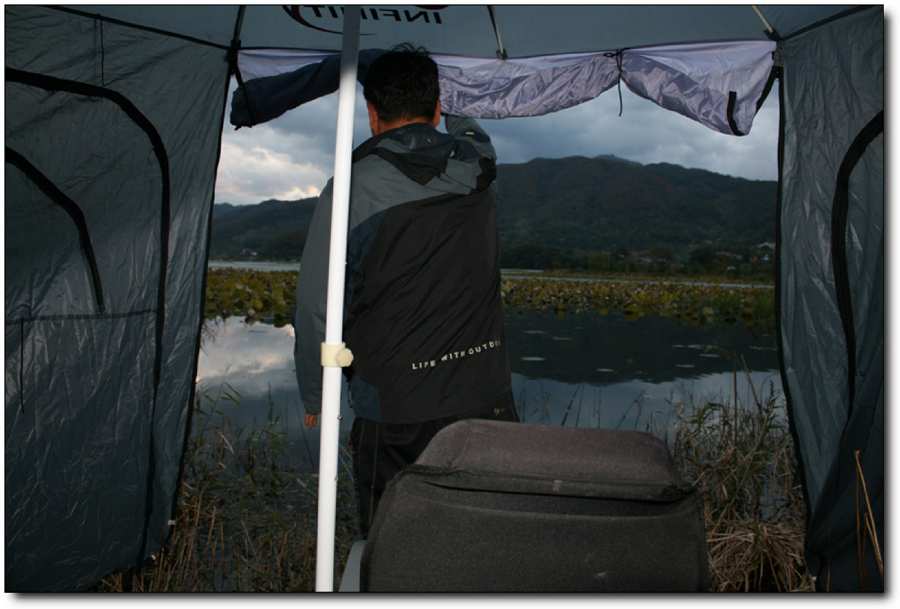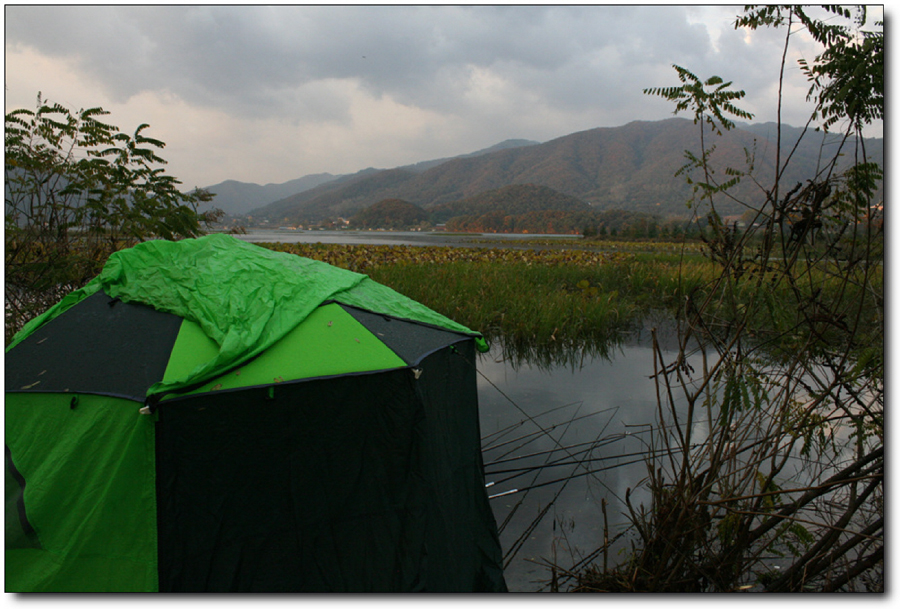 낚싯대를 다펴고, 겉보리 뿌리고, 텐트치고, 자리 정리하고, 잠시 쉬어봅니다.