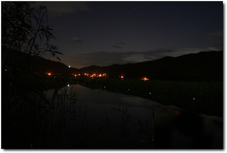 왼쪽으로 한바퀴 도니 동물의 흔적도 많고, 괜시리 밤낚시가 조금 두렵다는 생각이 들어 준비해가 음식에 소맥으로 외로움을 달래 봅니다.