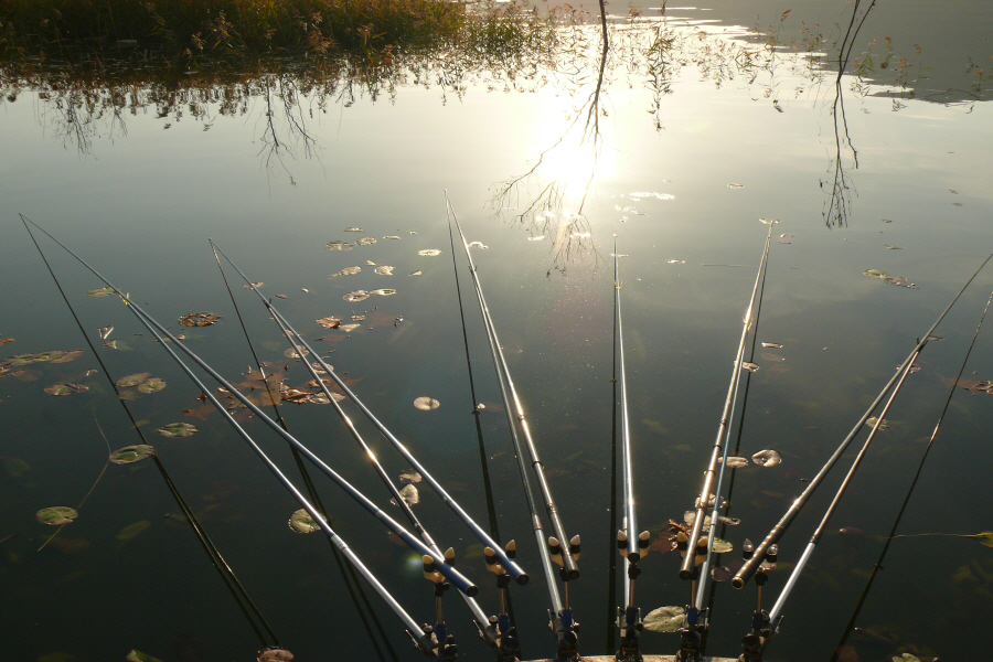 잘 정리된 수초대와 그곳에 알맞게 배치되어 있는 수상좌대들.