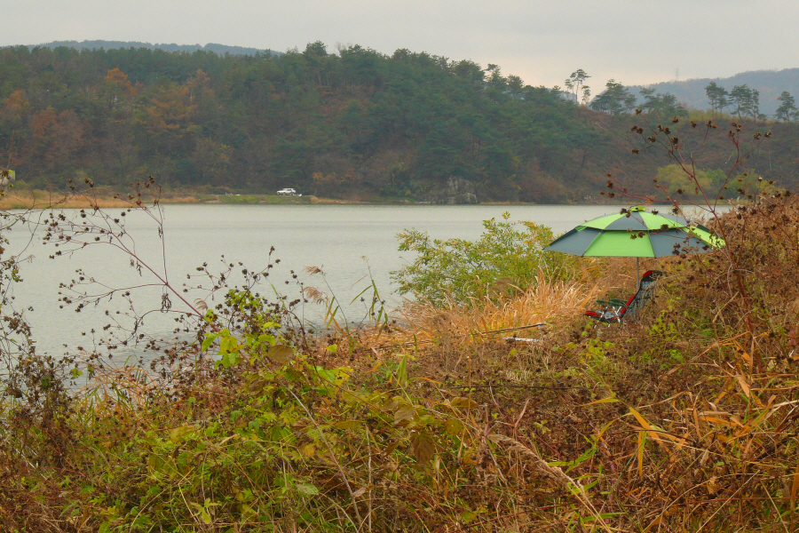 밤에 비소식이 있었서 비가 와도 걱정이 없는 포인트에 대편성을 하고 낮낚시에 임해 보는데 낮에 전혀 입질이 없습니다.