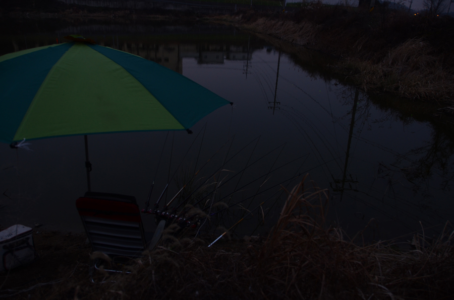 낚싯대를 채비하니 벌써 어둠이 내렸네요. ㅎㅎㅎ