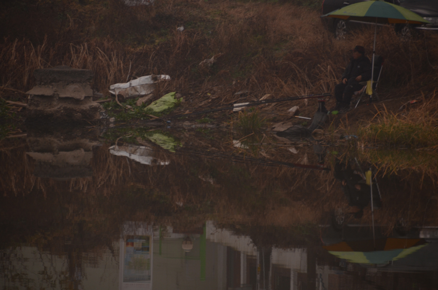 필자는 최상류 부들이 분포한 곳을 넘겨쳐서 찌를 세우고, 이론박사님은 제방 좌안권 끝자락에 채비를 한다.