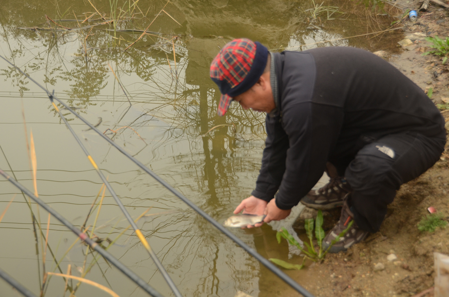 2 ~ 4치 토종붕어가 새우망에 수십마리 들어가고, 소류지 중앙에서 준척급 이상의 붕어들이 라이징을 하는데