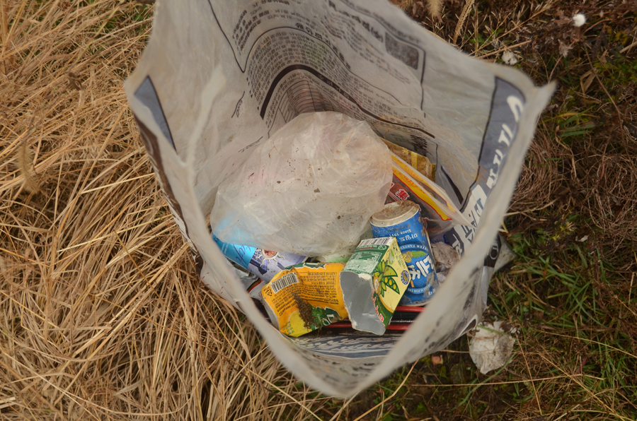 이론박사님 자리와 필자 자리 주변에 쓰레기를 모아와서 종량제봉투에 버렸습니다.