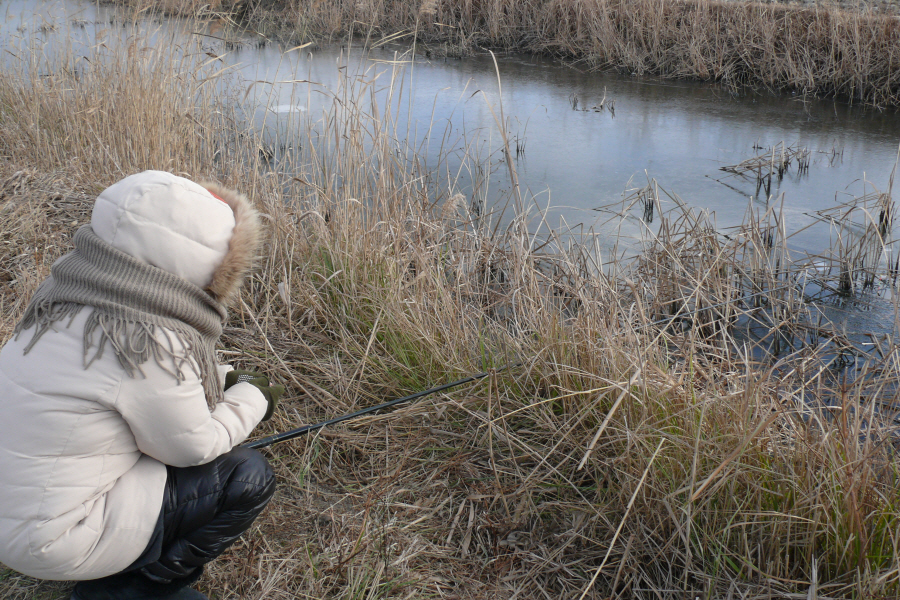 얼음에 돌을 던져서 구멍을 내고 낚시를 시도해 보았지만 정말 입질 받기가 힘들었습니다.