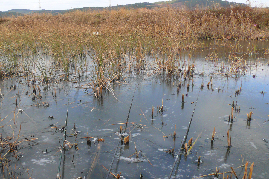 얼음 두께는 중앙부근이 2센티 정도 얼어서 조만간에 얼음낚시가 가능할 것 같아 보입니다.