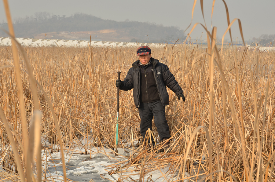 갈대와 부들이 빼곡한 속에 조사님이 있네요. (숨은 그림 찾기)