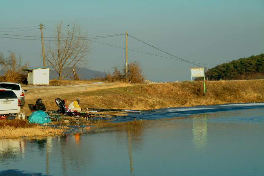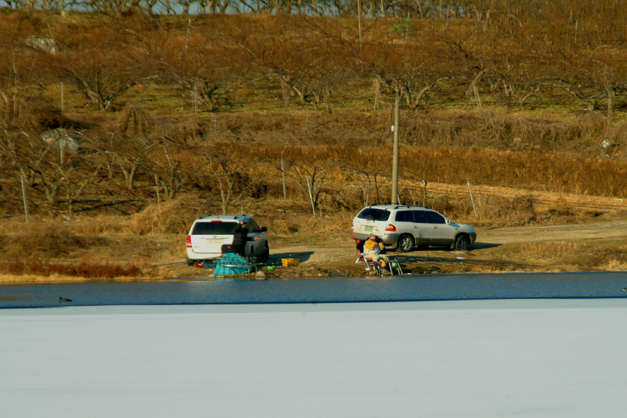 대회 전에 빙질 상태와 붕어가 입질을 하는지 알아 보기 위해서 대회장인 마정지를 잠시 찾아갔습니다.