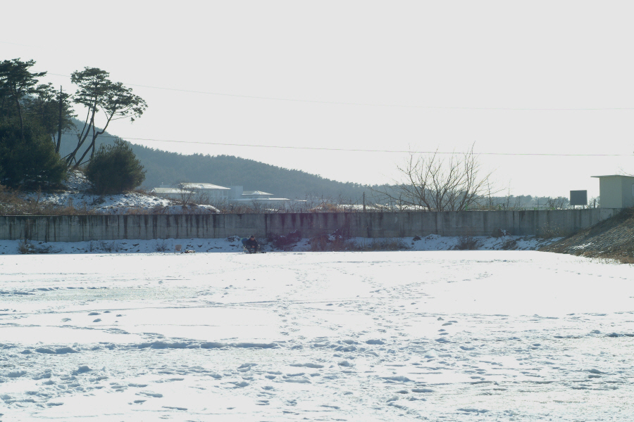 소류지에 도착을 하니 눈이 3센티 정도 덮혀 있는 상태이고, 거의 얼음낚시를 하지 않은 것 같은 느낌입니다.