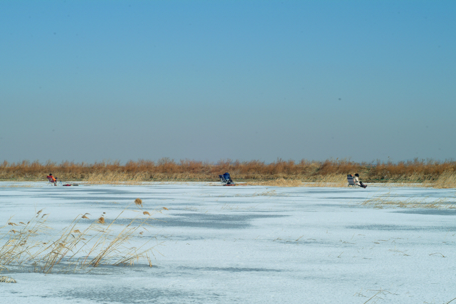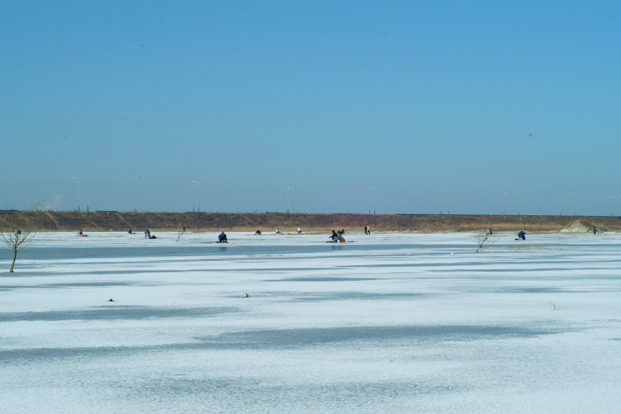포근한 날씨에 제법 많은 조사들이 자리를 잡고 얼음낚시에 임했는데
