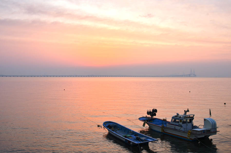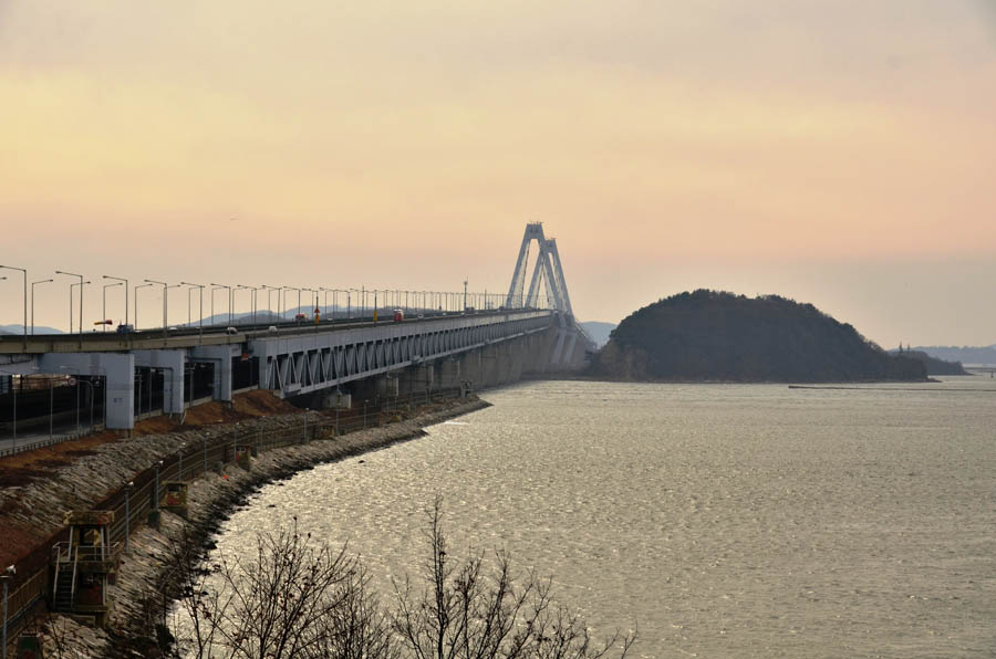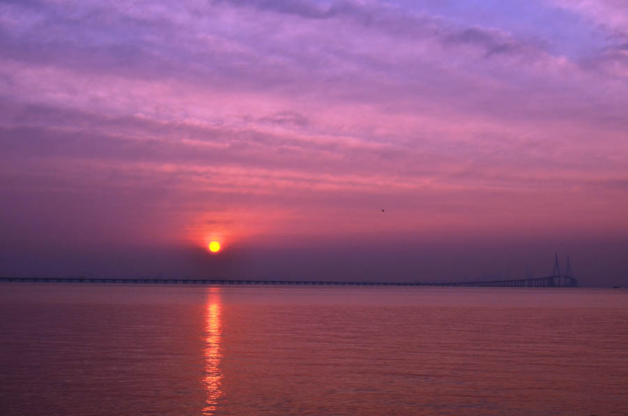 일출 포인트에 도착하니 인천대교로 날이 밝아옵니다.
