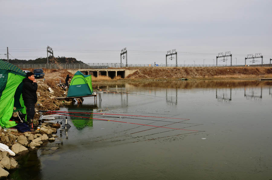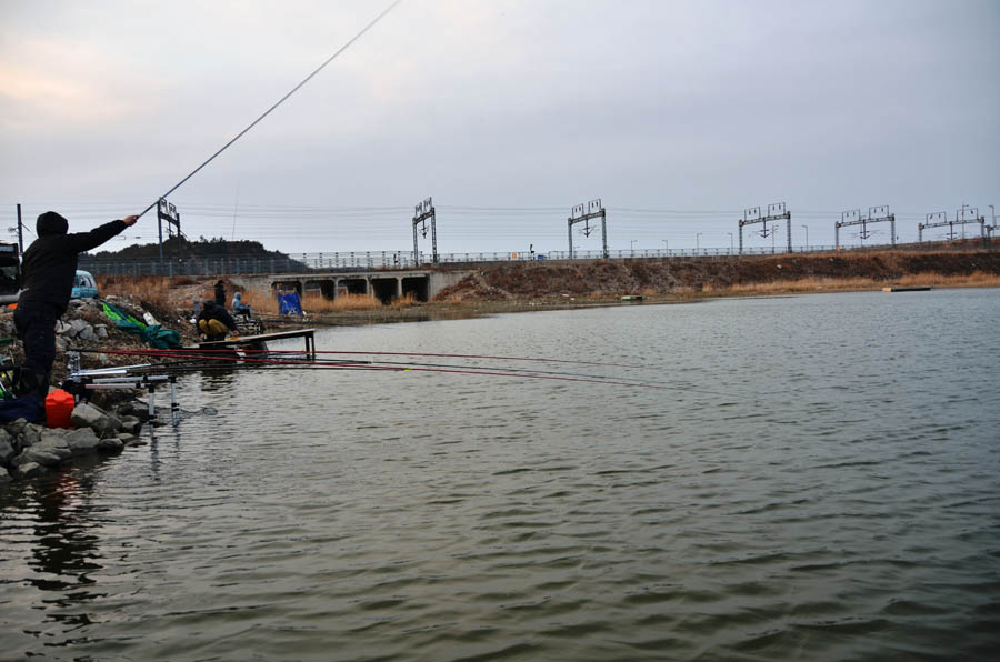 낚시를 하다보면 더 않좋은 조건도 많지만 당일도 바람불지 흐리지 기온은 영하지 물은 배수를 50cm정도 했지요.
