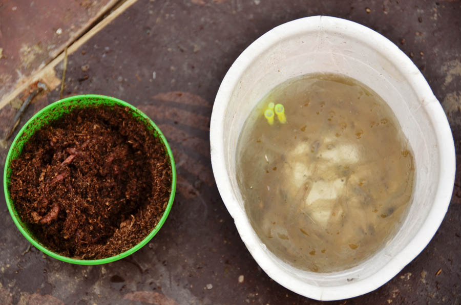 필자가 사용한 미끼인 지렁이와 바닥새우입니다.