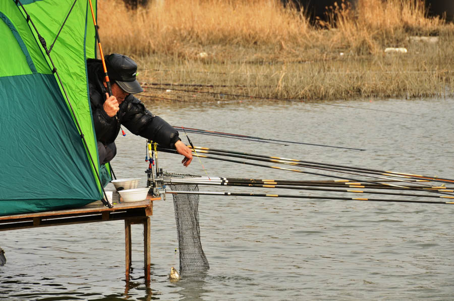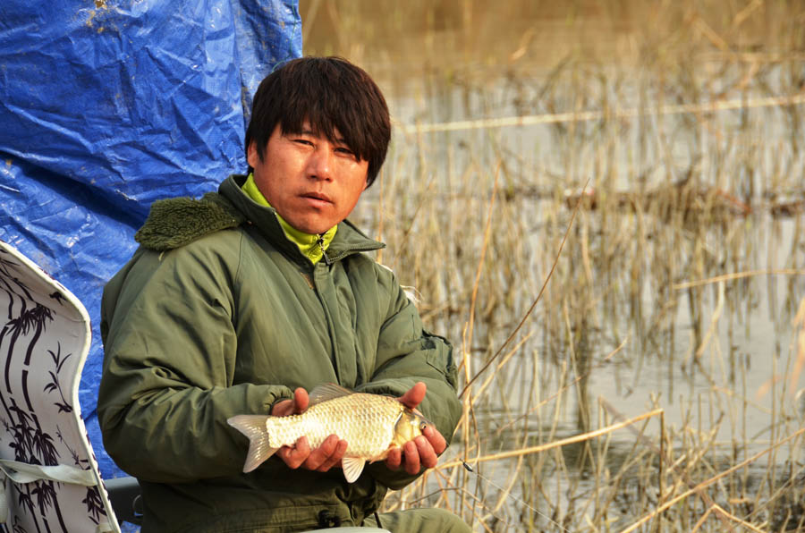 낚싯대에 전해지는 손맛이 이런 거구나라는... 느긋하게 붕어를 건져낸다.