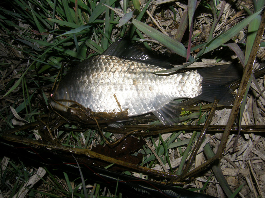 자정무렵... 필자의 첫 수 수초를 감고나온 9치급입니다.