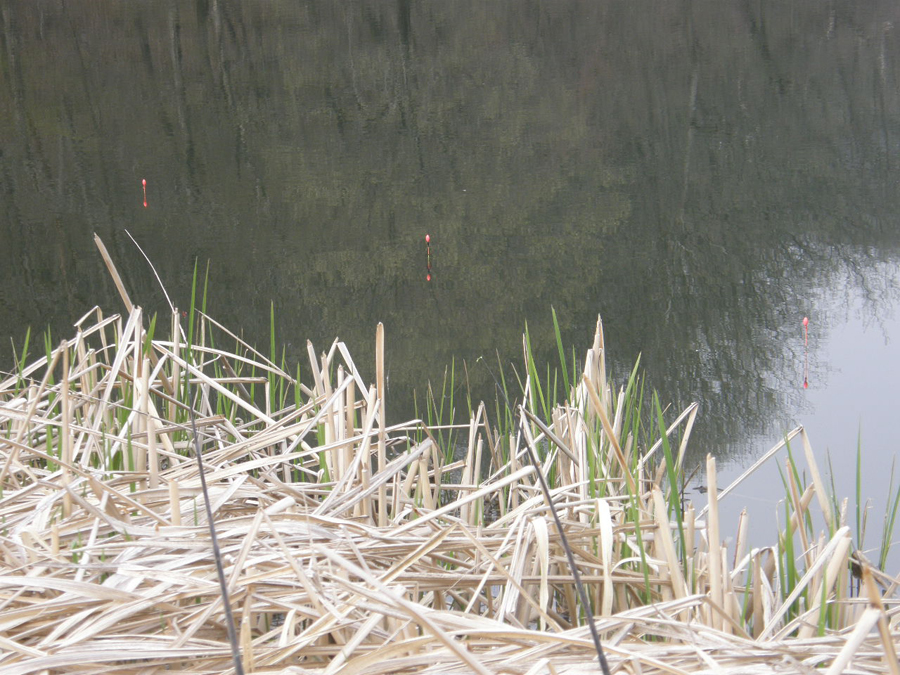 제방권에 자리를 하고 부들을 넘겨서 갓낚시로 편성을 해본다.
