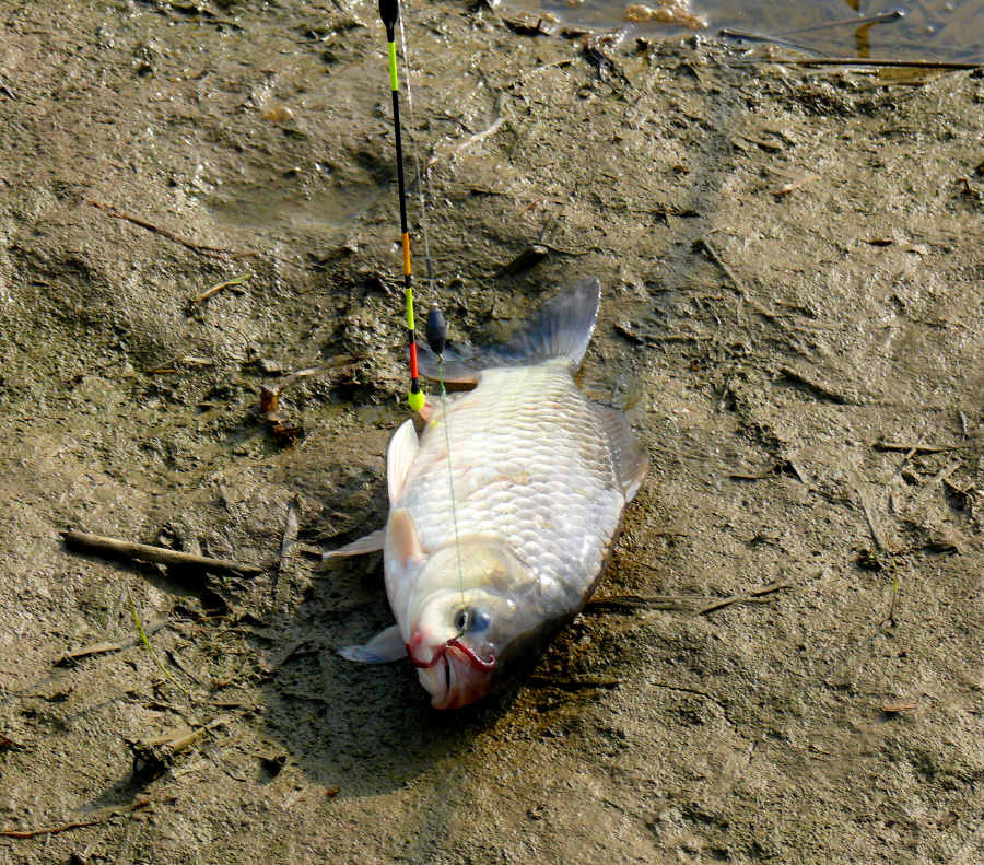 지렁이를 물고 나온 9치급 붕어입니다.
