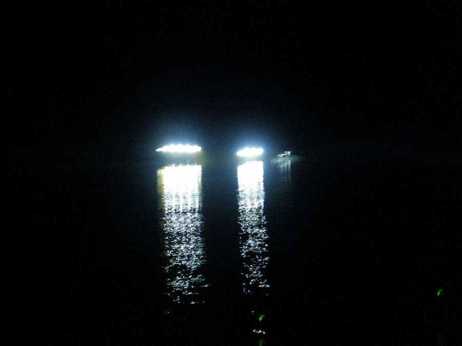 어선이 왔다갔다하고 다슬기를 잡는 배의 불빛이 마치 오징어잡이배처럼 불을 환하게 밝히고 왔다갔다한다~