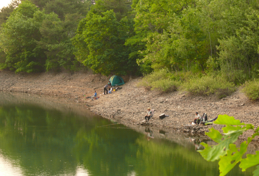 낚싯대도 펴주고, 먹거리도 챙겨주고, 모처럼 같이 나온 훌쩍 커버린 아들도 마냥 좋아 하는 것 같습니다.