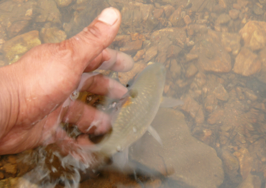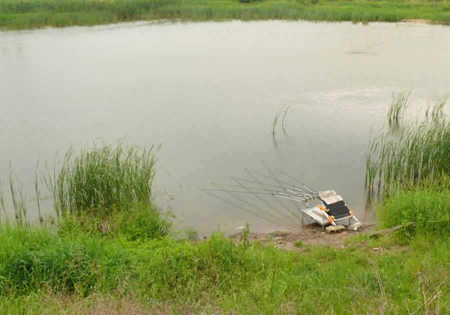 동 틀 무렵에 7치급 붕어를 한 수 걸어 내었는데 사진을 찍으려다가 자동 방생이 되었습니다.