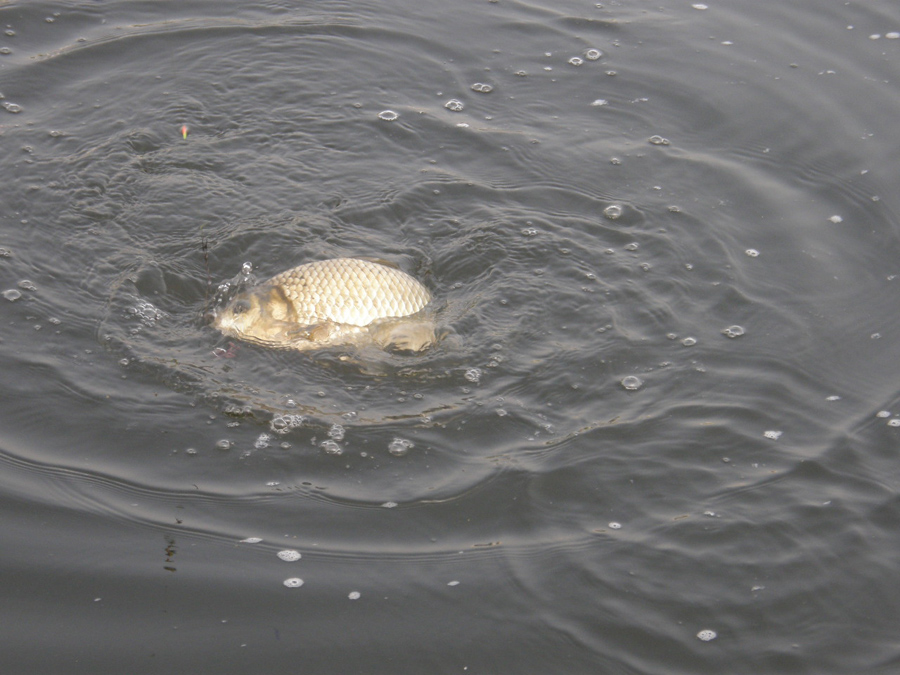 긴장만 하고 기다린지 두시간 기다리던 제대로 된 시원한 입질에 또.. 엄청난 힘을 쓰고 덩치좋은 붕어가 나온다~